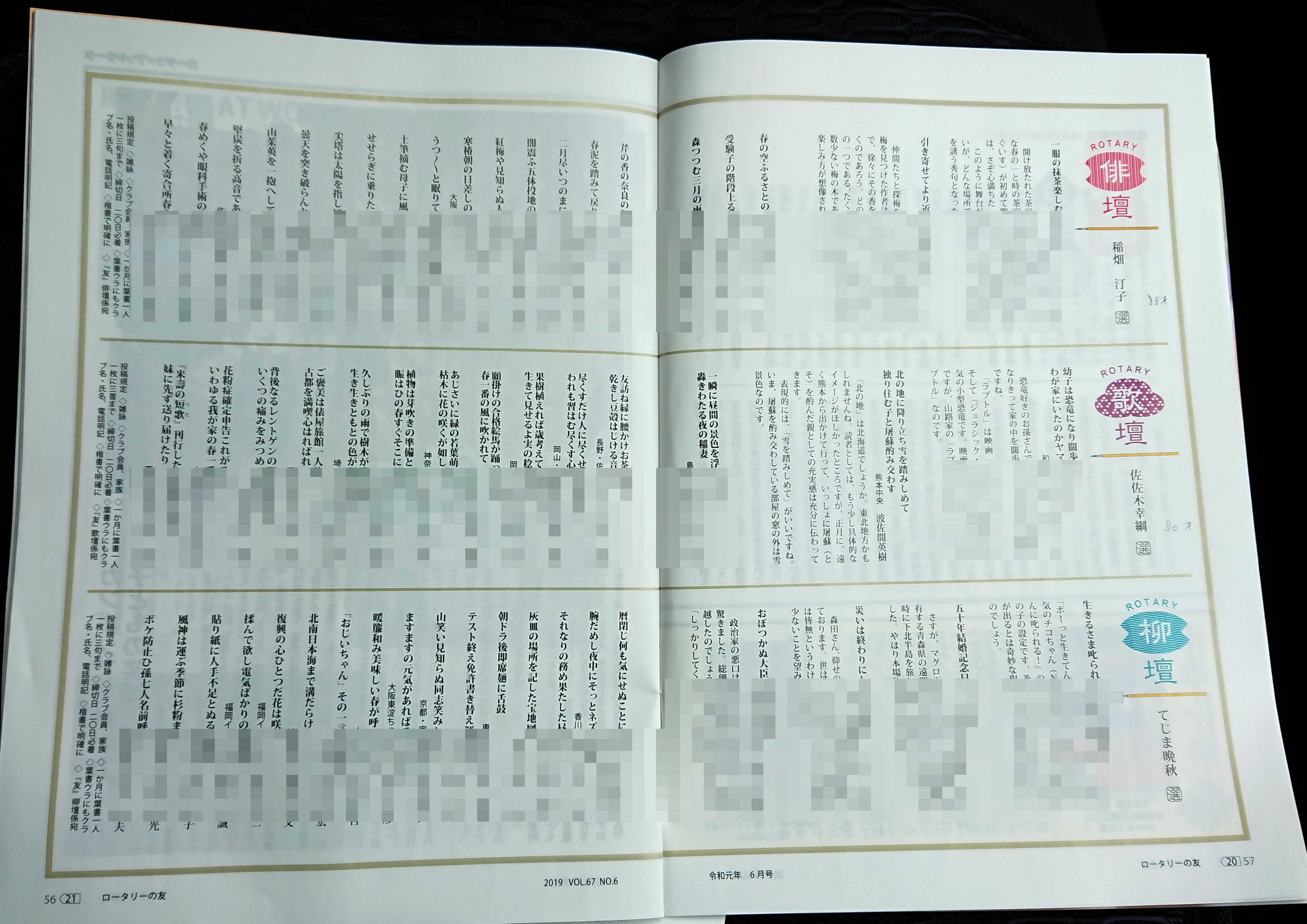 『俳壇』『歌壇』『柳壇』と言う歌人の方が厳選して掲載されるコーナー。