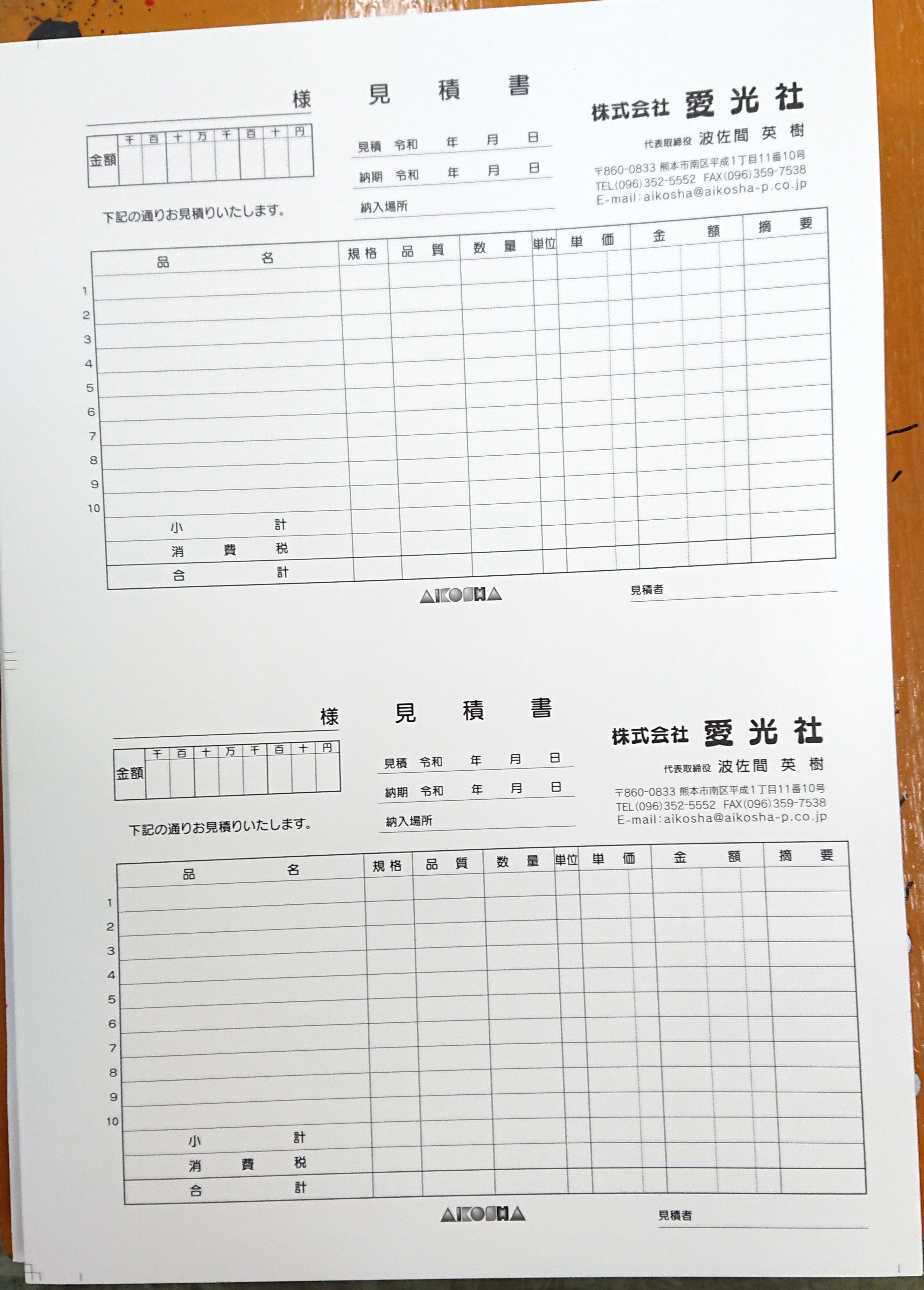 見積書、領収証は愛光社!