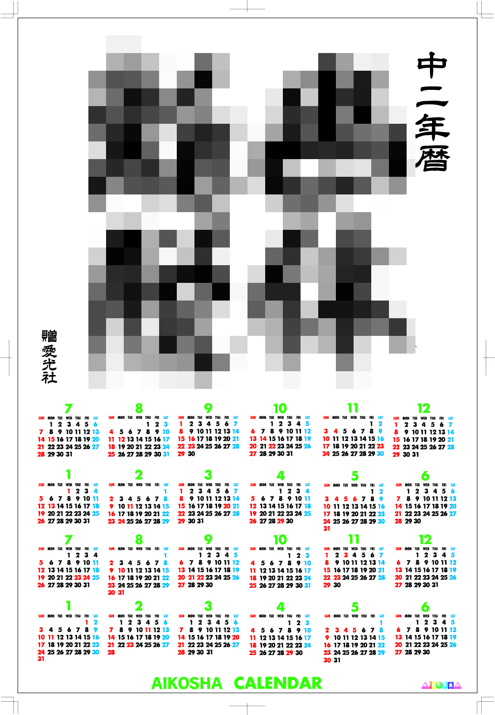 このカレンダー中二の保護者をもつ方のみ先着十名にプレゼントしたいと思います。