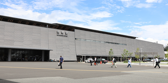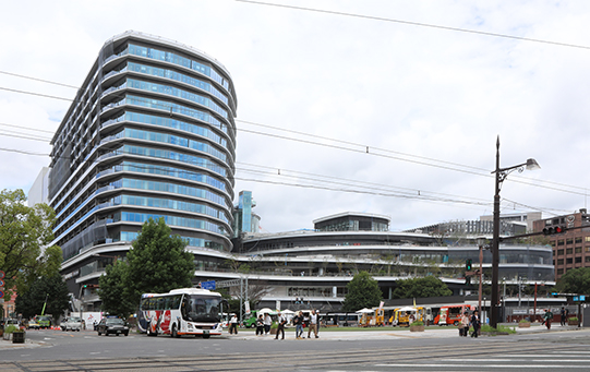 熊本駅も黒っぽいと思っていましたが、天気になるとそこまで黒くない。威圧感はありますね。