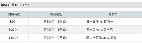 一回戦最終日の第5日の第2試合に行われます。