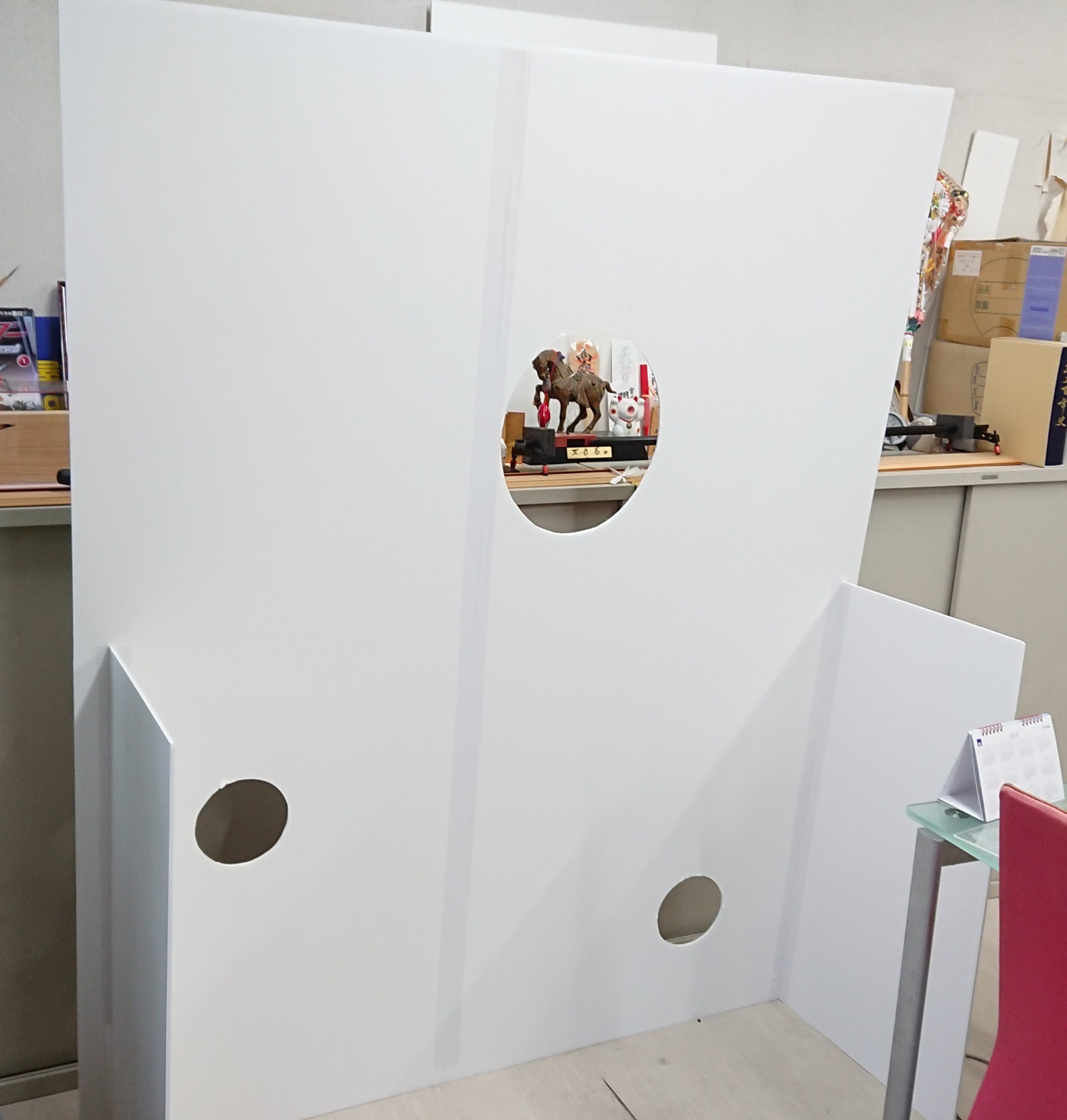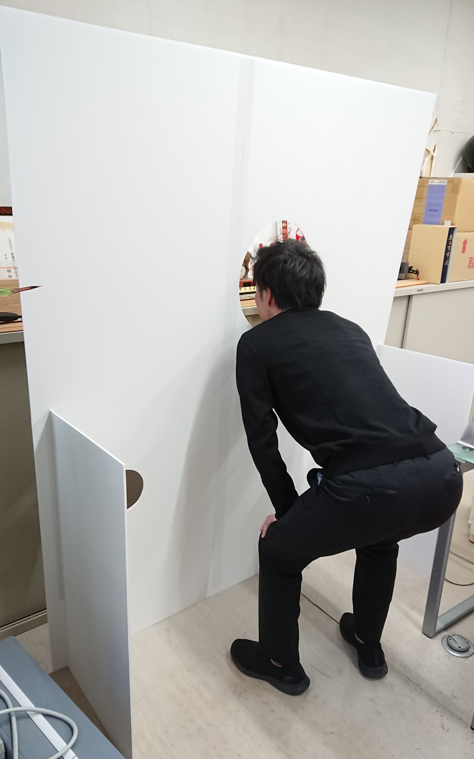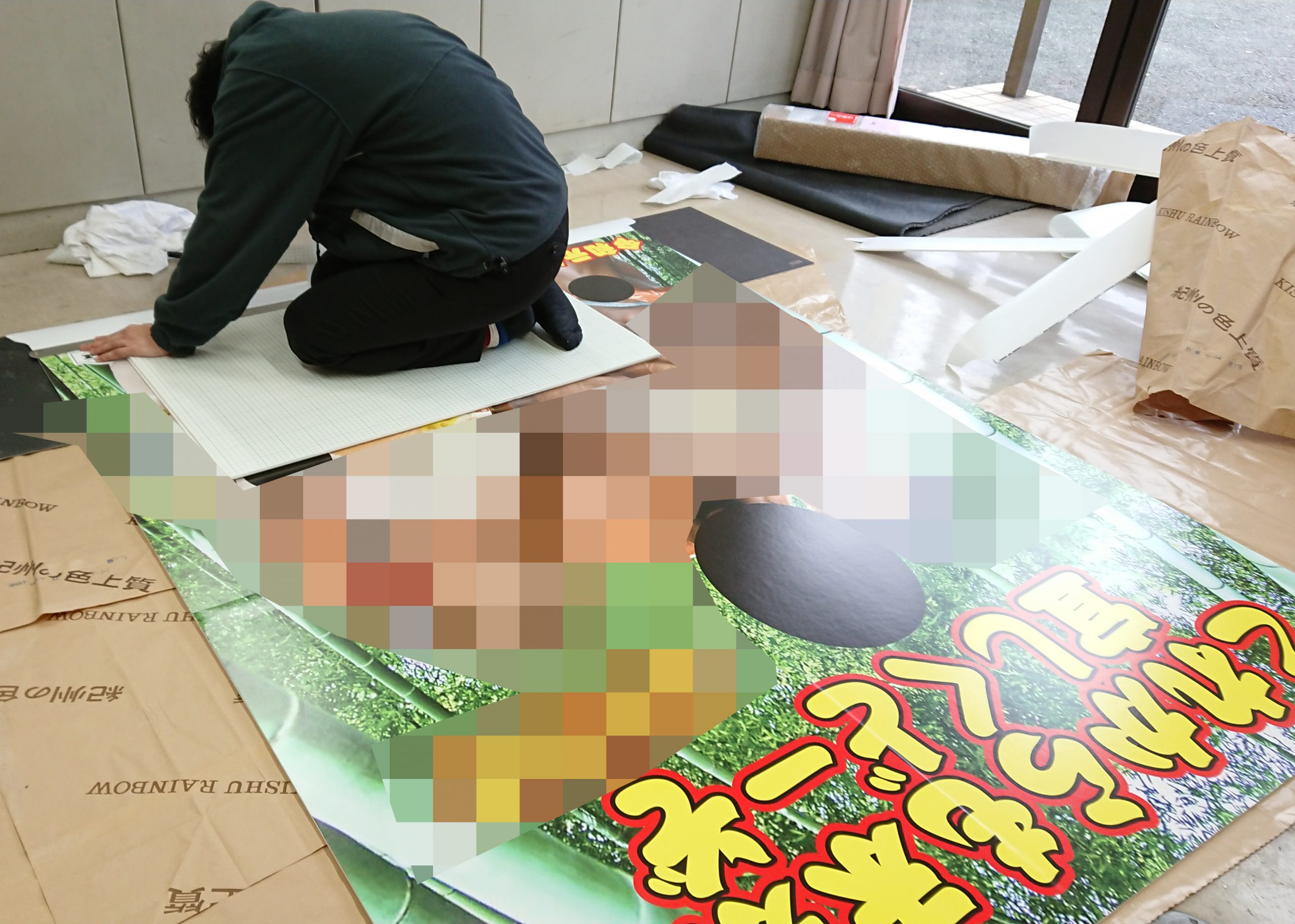 事務所でインターシップの学生さんと四人で貼り付けし周りをカット