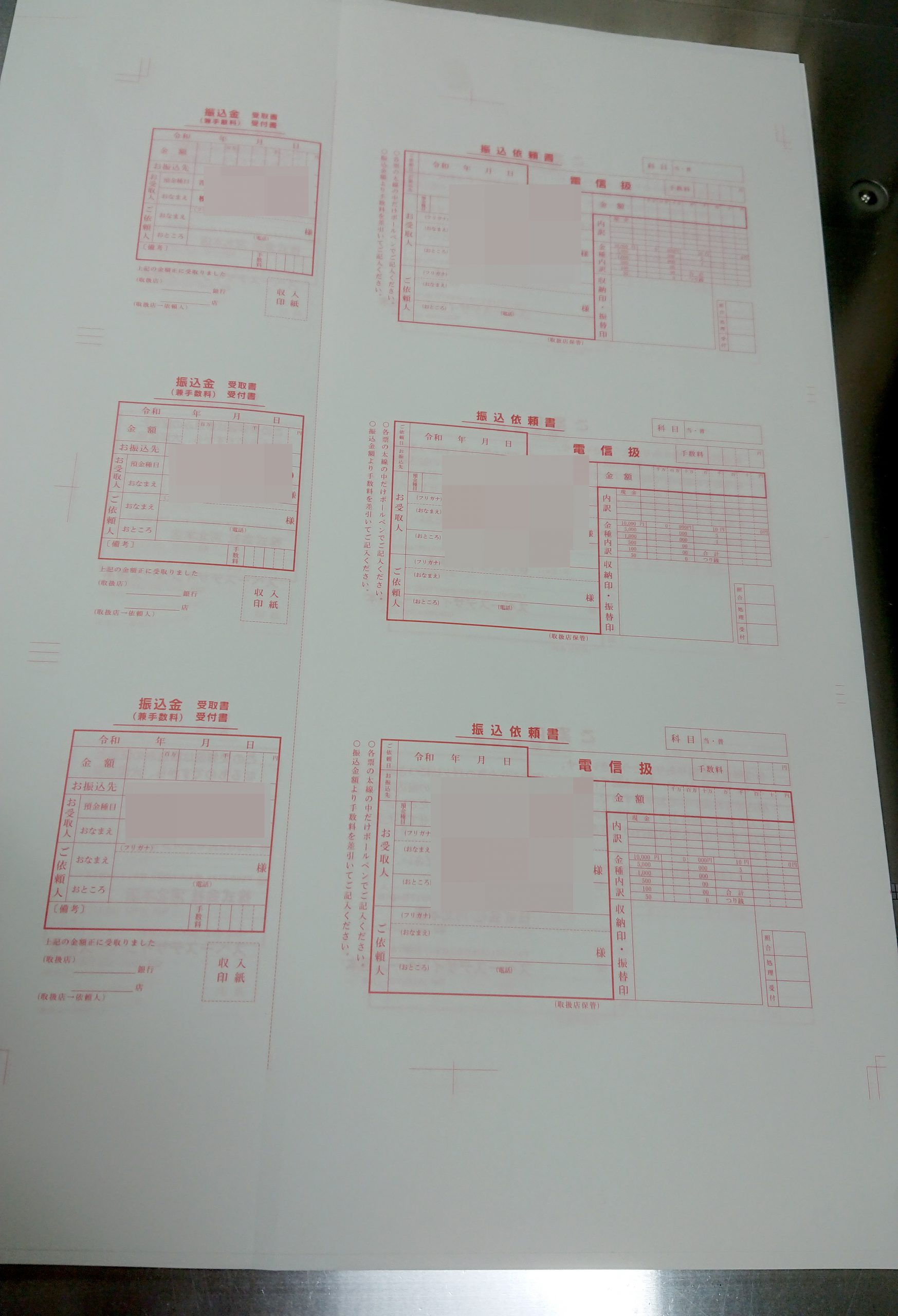 銀行用のオリジナルの振込用紙の依頼がありました。