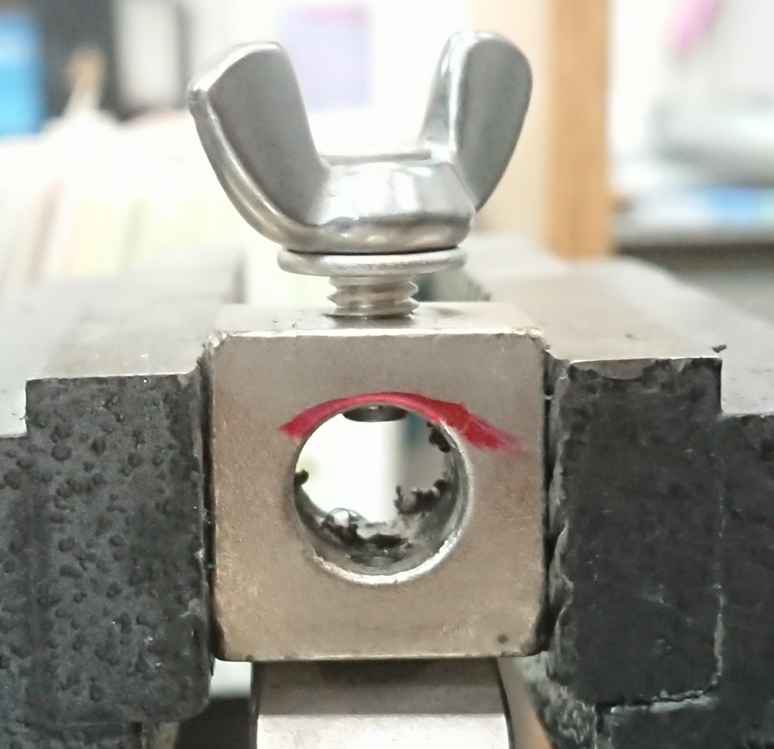 万力に挟んで歯向かってみるが歯が立たない。