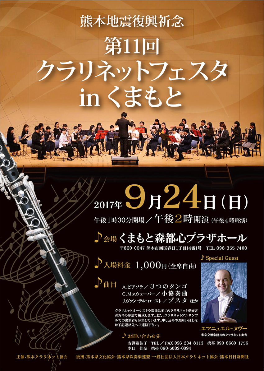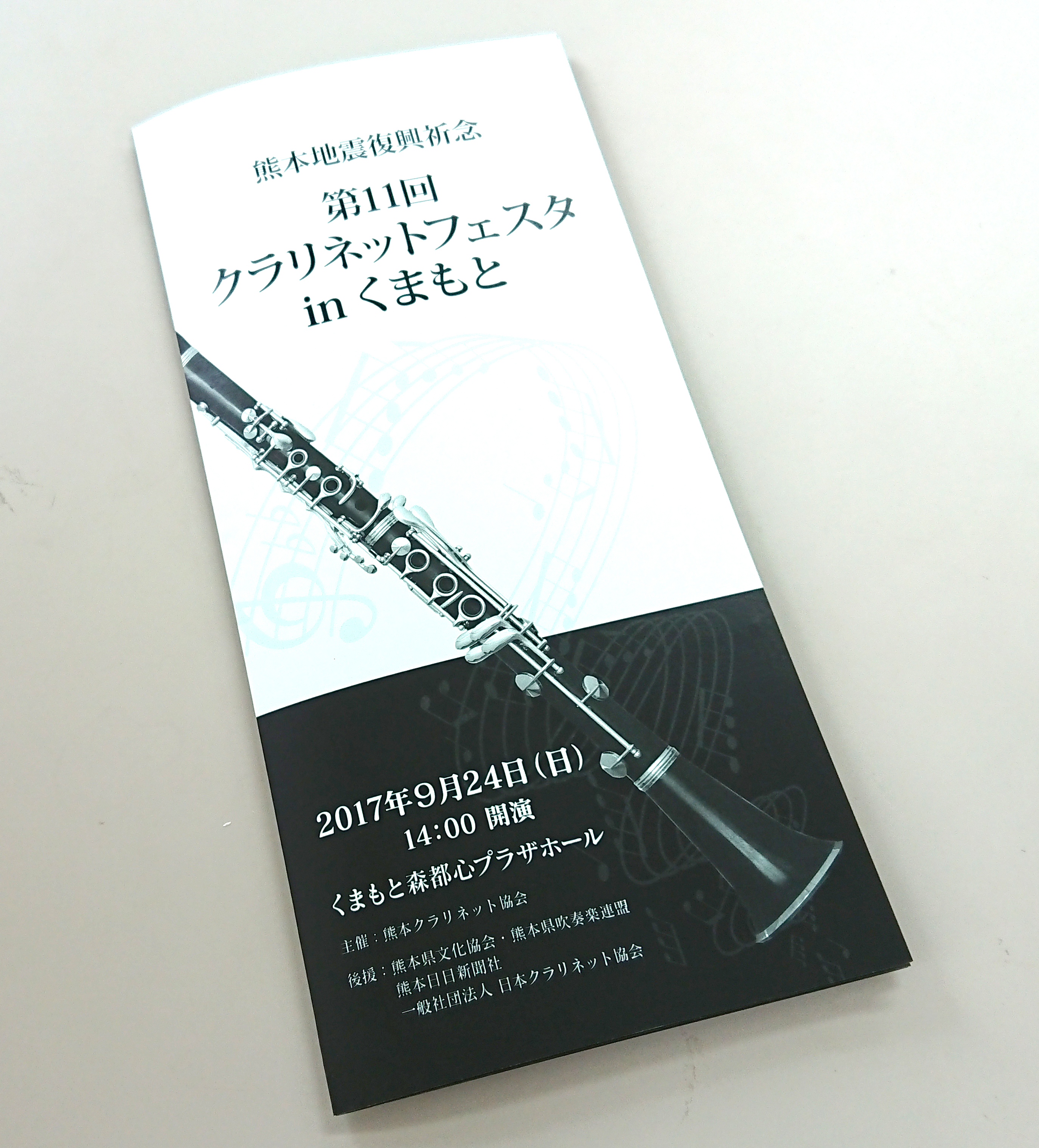 ↑コチラは今度の日曜日9月24日に『くまもと森都心ブラザーホール』でおこなわれる『クラリネットフェスタ』の三つ折りパンフレットです。