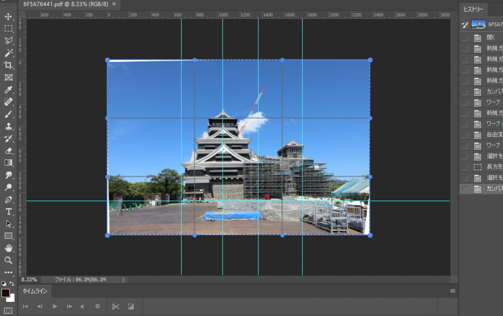 ワープ機能で若干の画像補正をして見た目にはまっすぐ見えるように致しました。