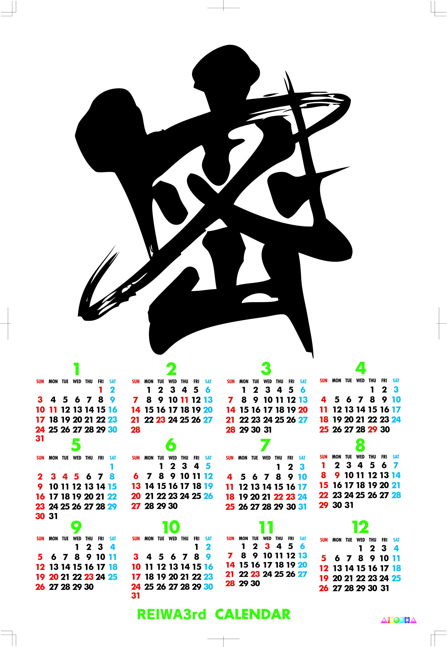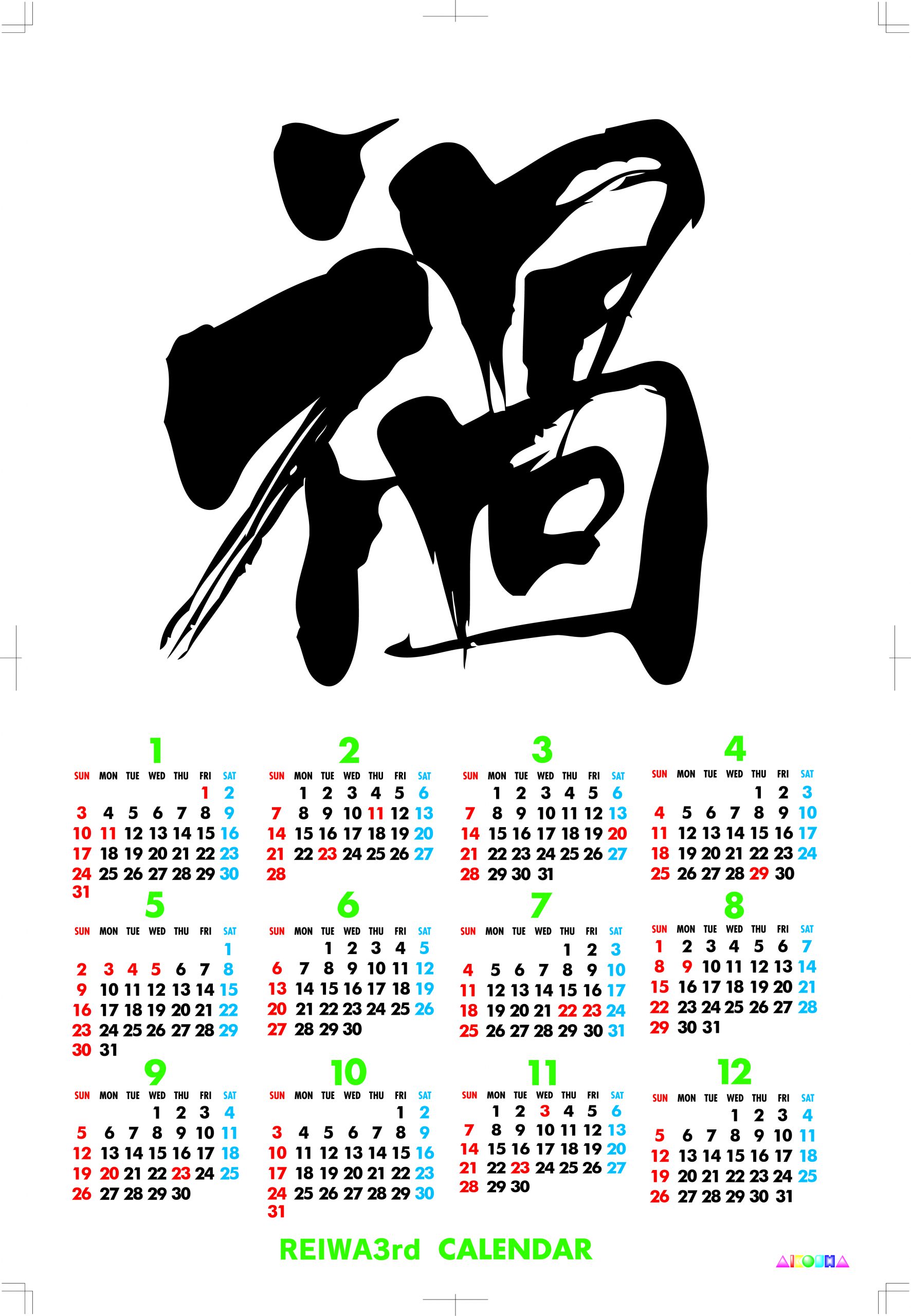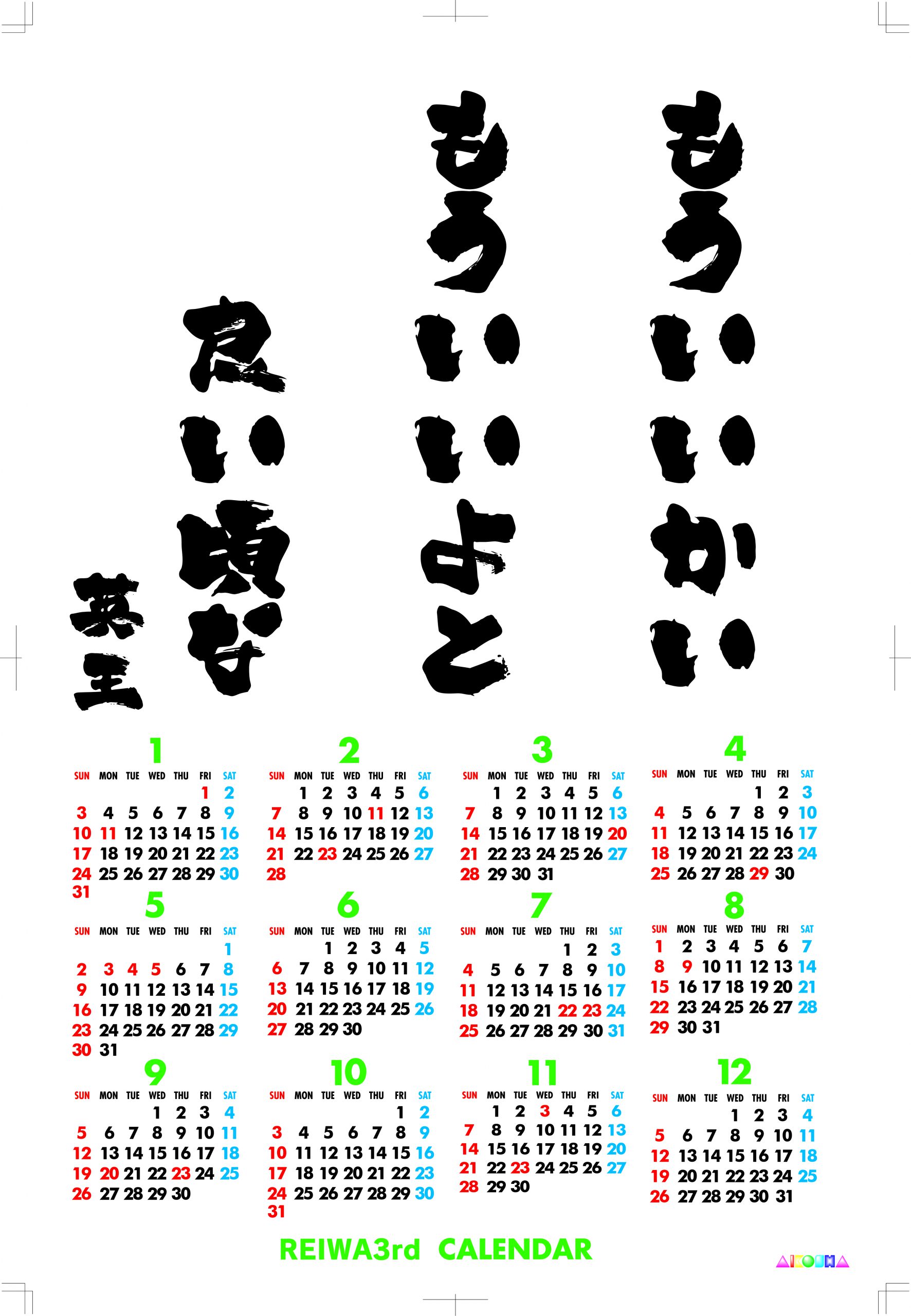 わが社では来年の祝日も変更になった一枚もののカレンダーをお作り致しております。