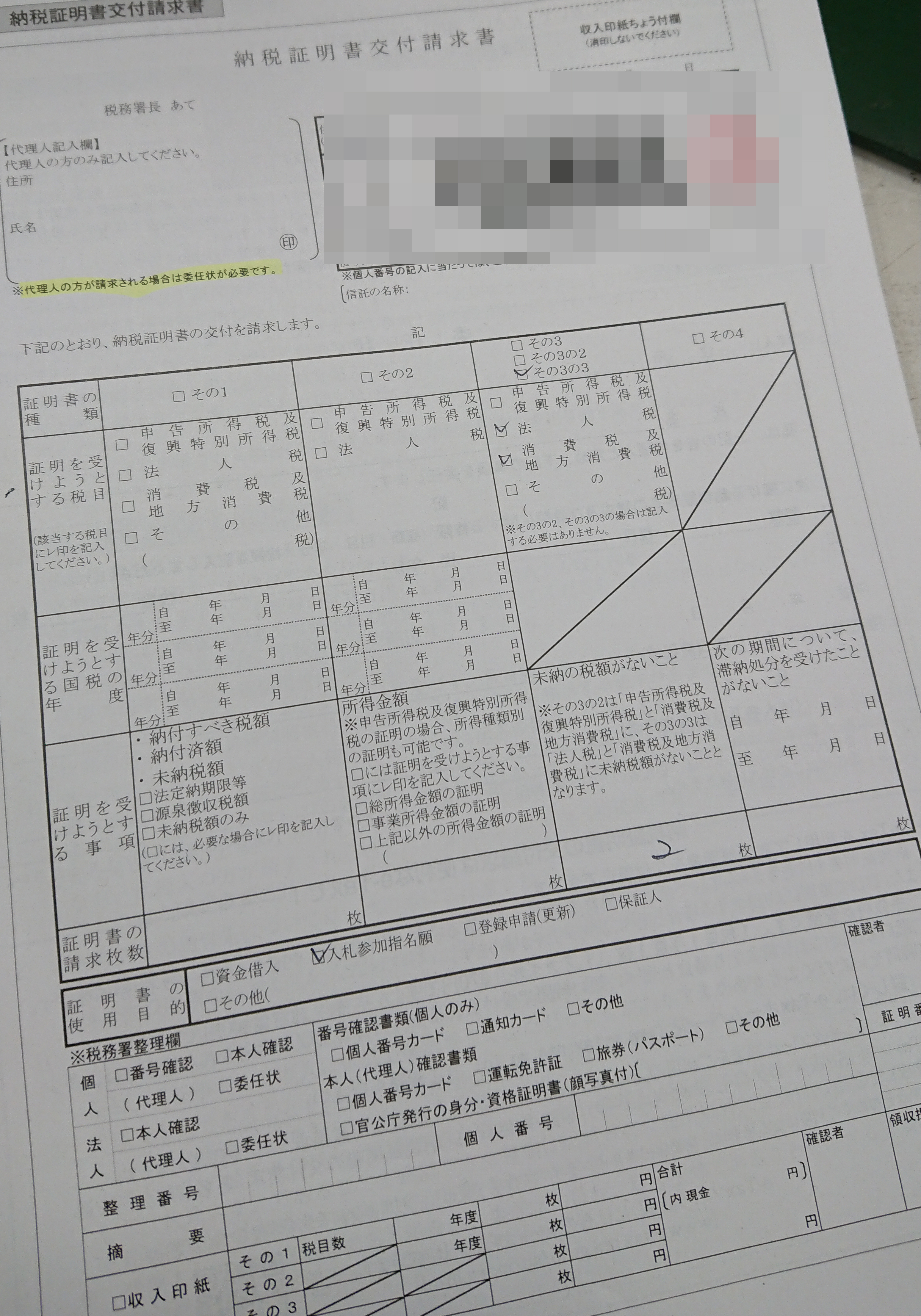とりあえず一昨日は税務署にまず行きまして、『消費税及び地方消費税』の未納が無いことの証明『その3の3』と言う書類を2通とりました。