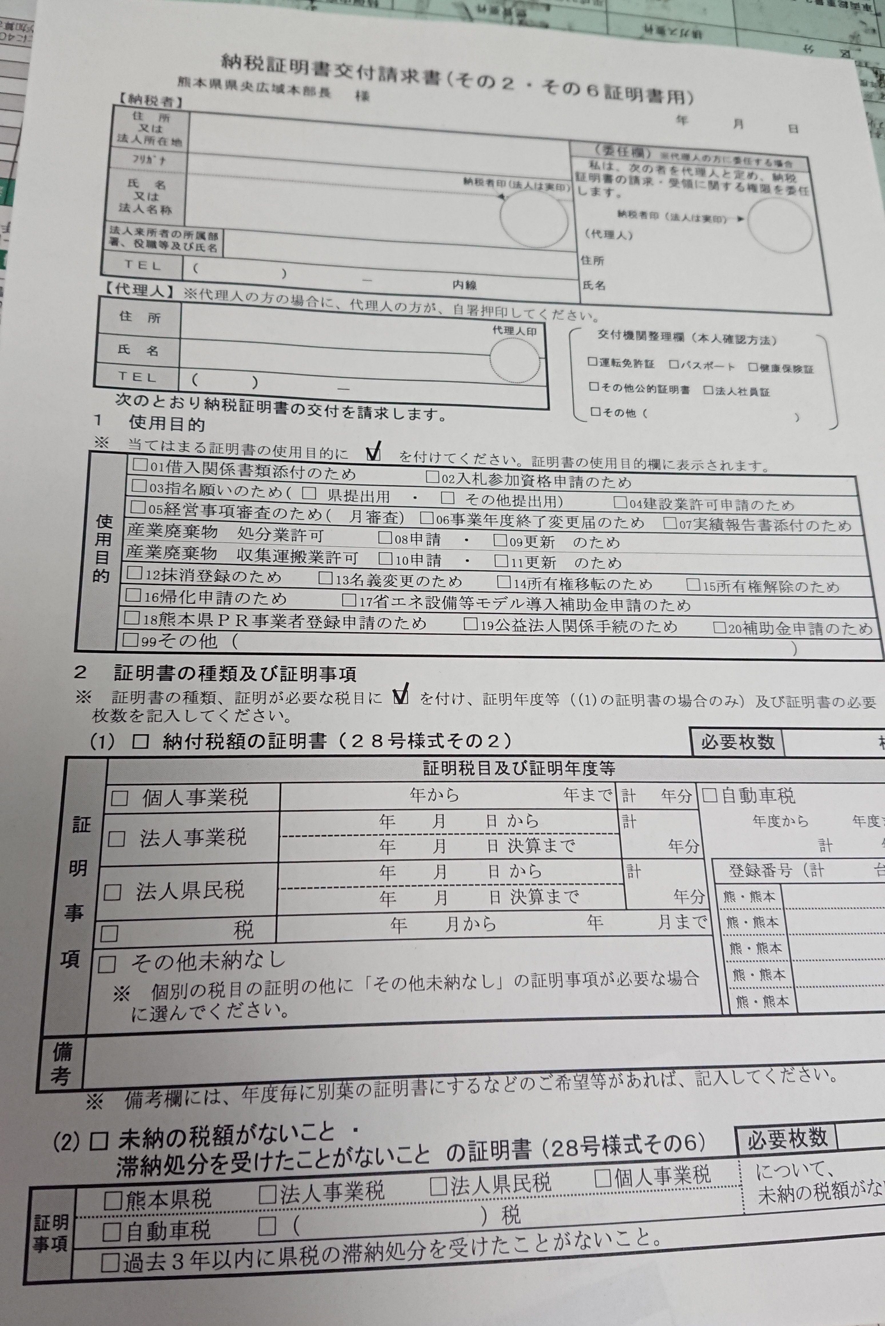 『県税の未納が無いこと別記第28号様式(その6)』と言う書類を1通とりました。