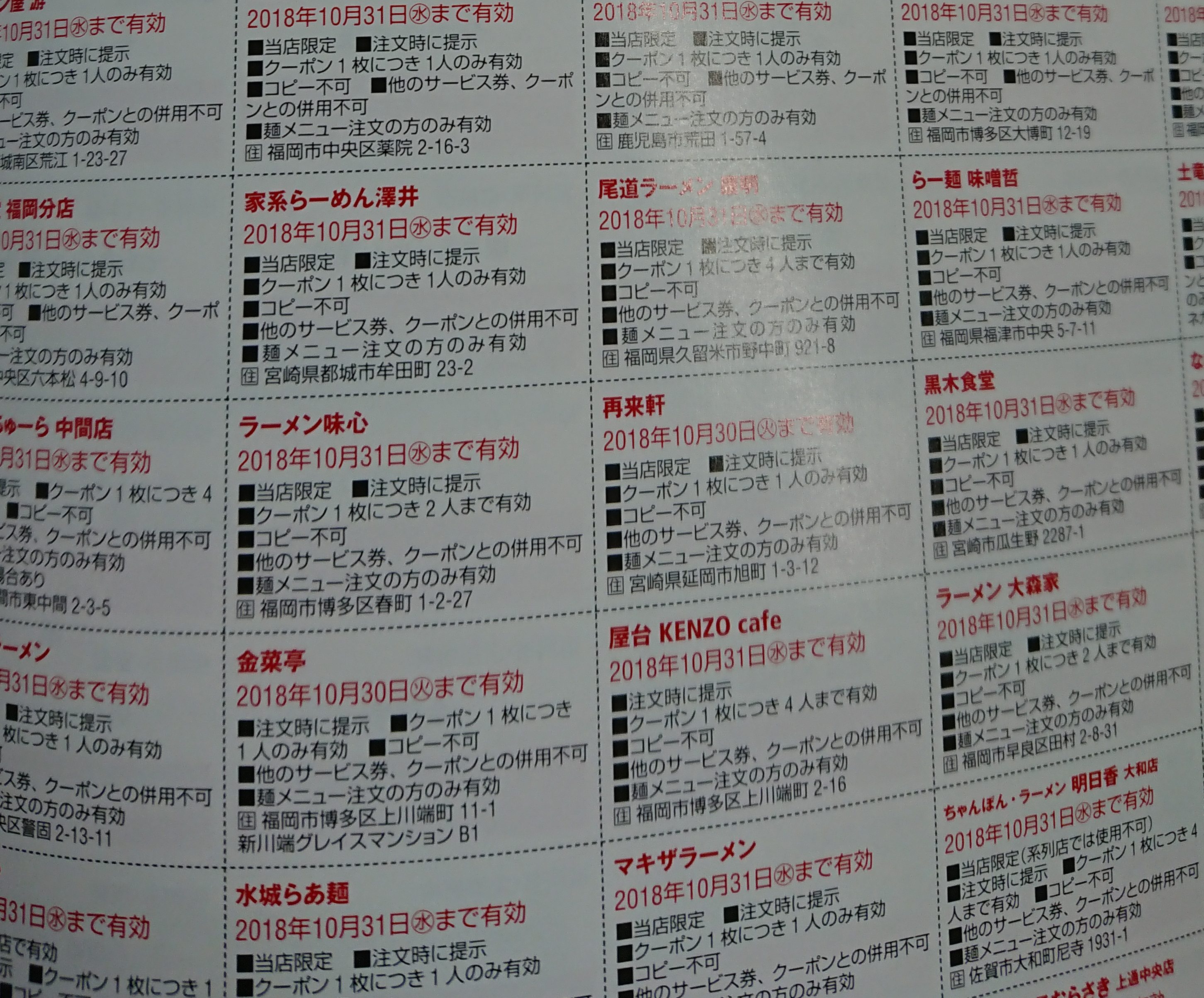 クーポン券があったけど10月30日まで…