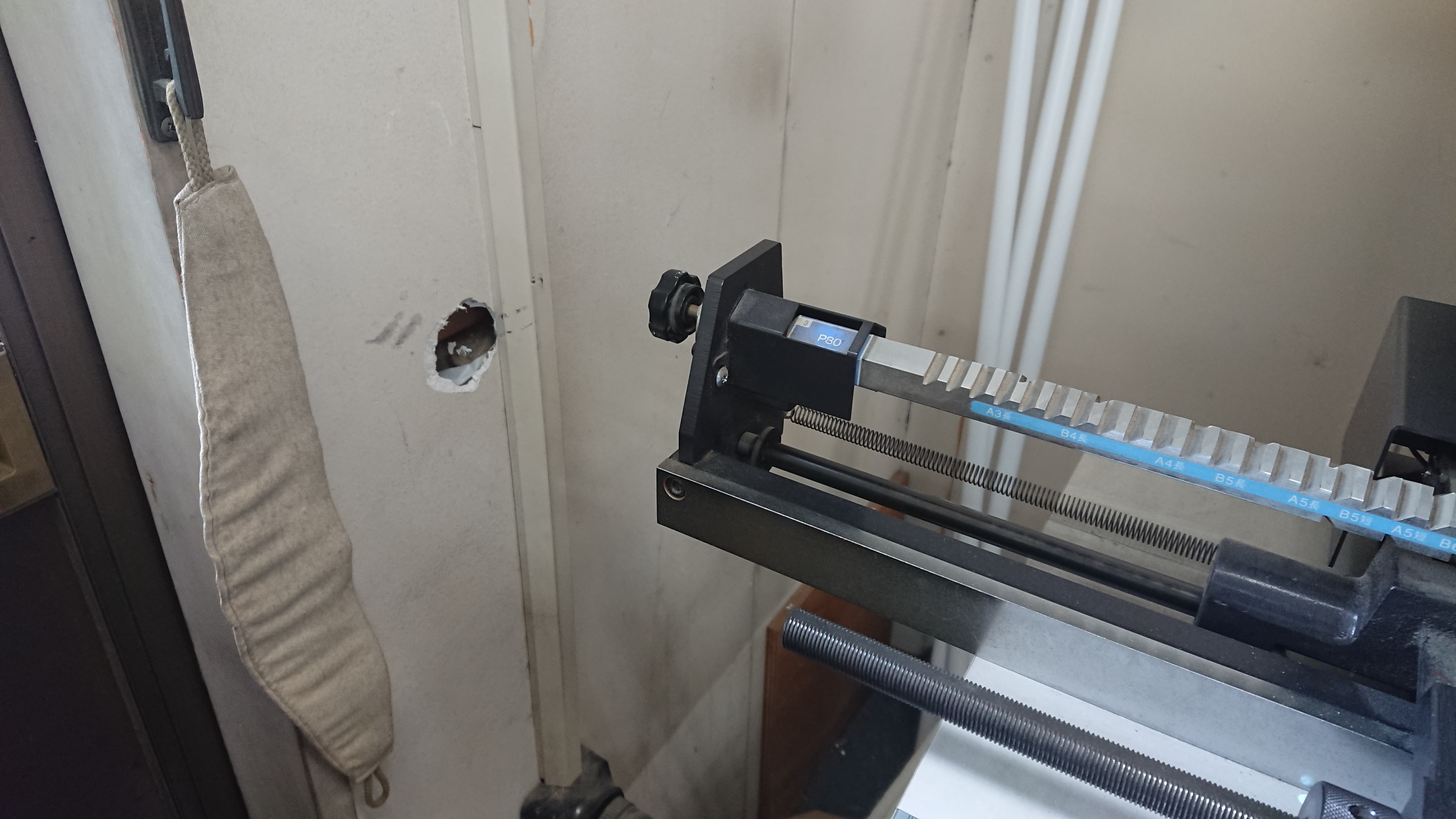 穴あけ機で行います。手でしたりしませんよ。