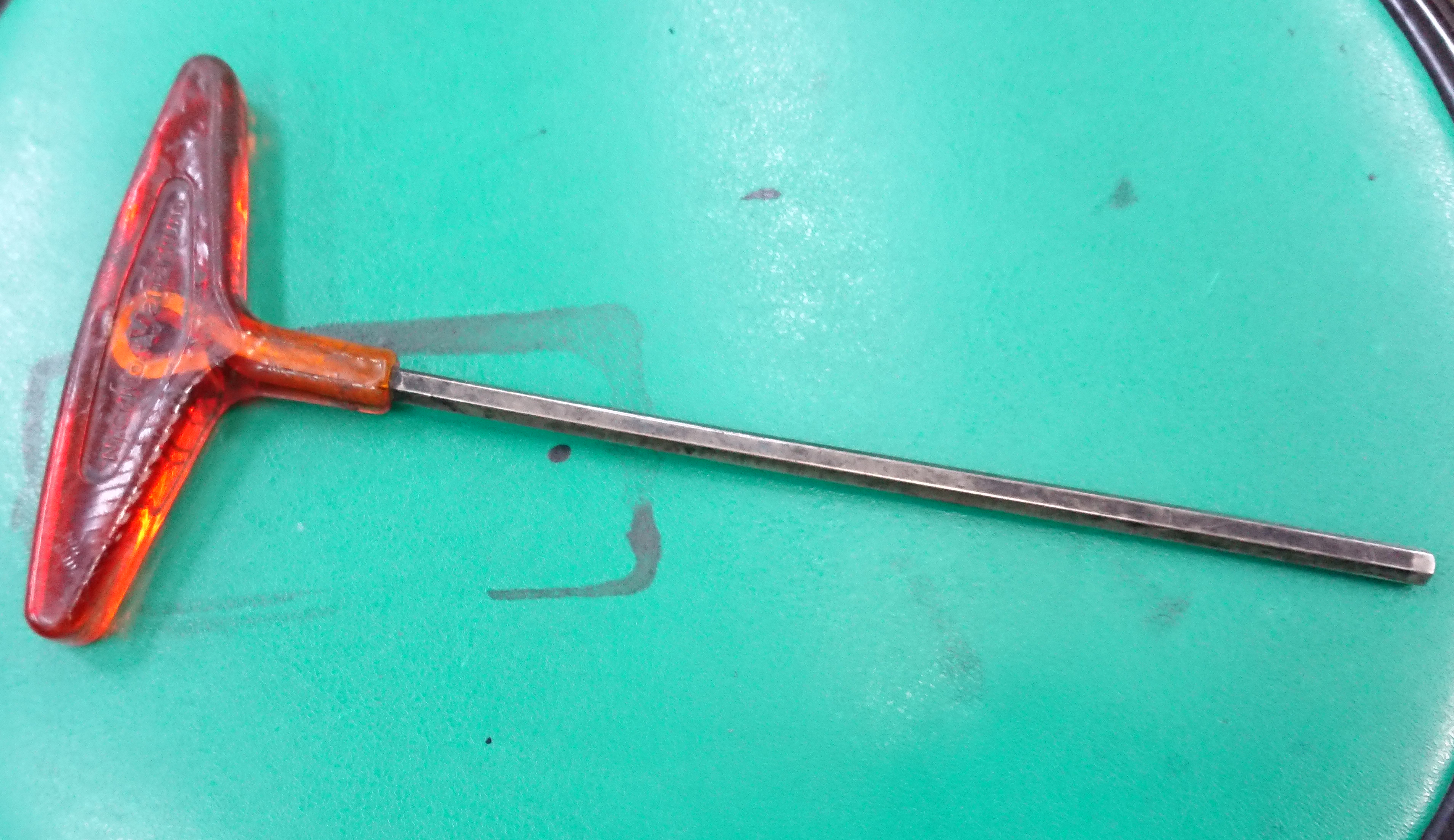 レーシングカートのリアタイヤのキャップボルトを回すのに役に立ったTレンチ。