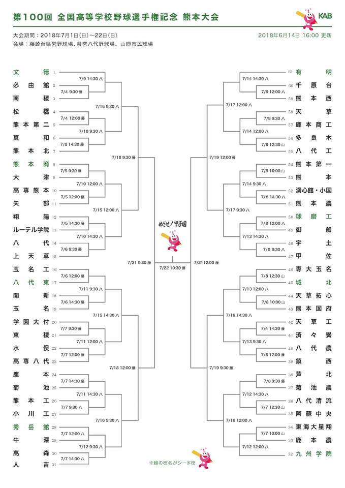 先日、第百回全国高校野球選手権大会熊本県大会の組み合わせ抽選会が行われました。