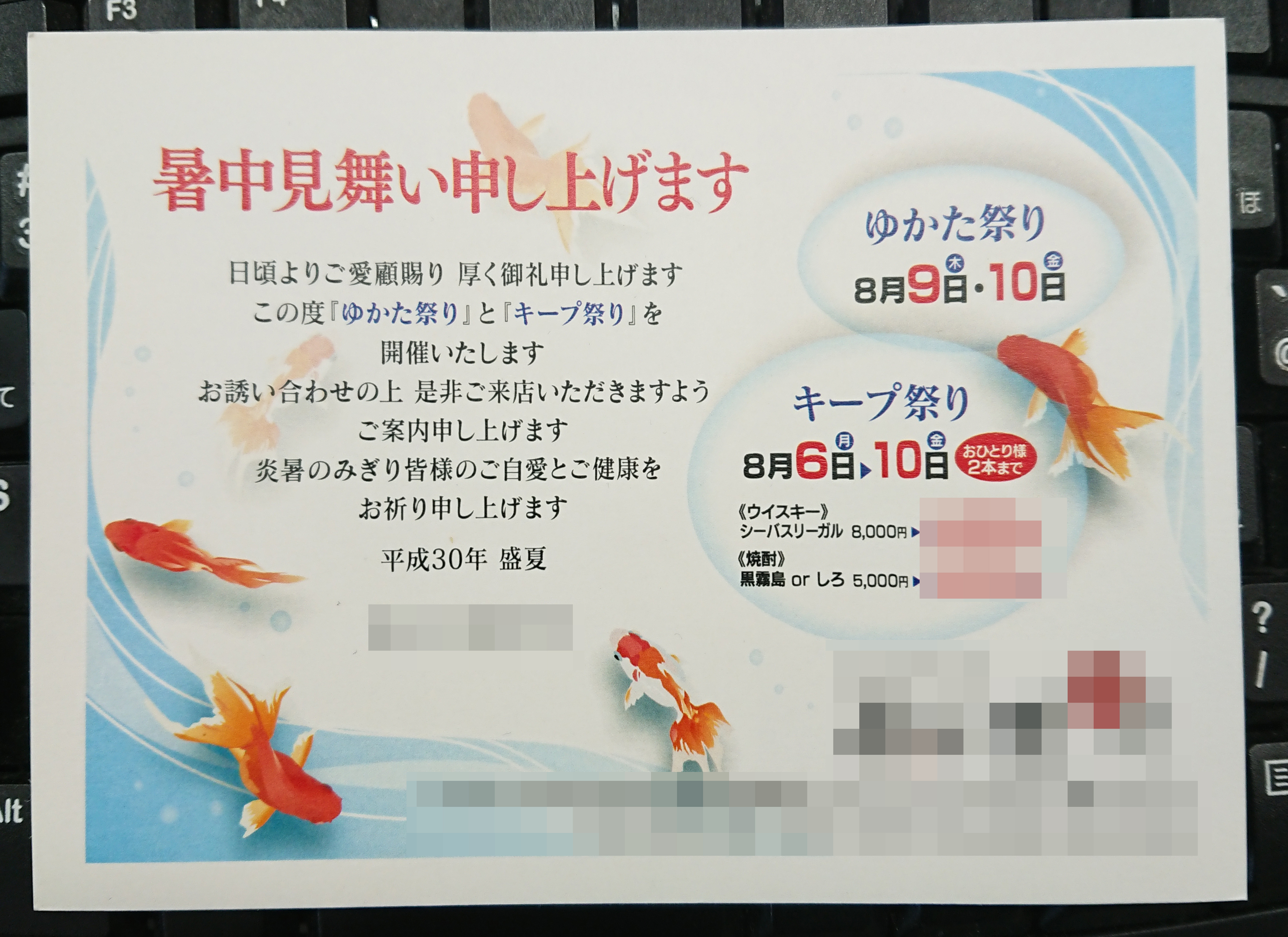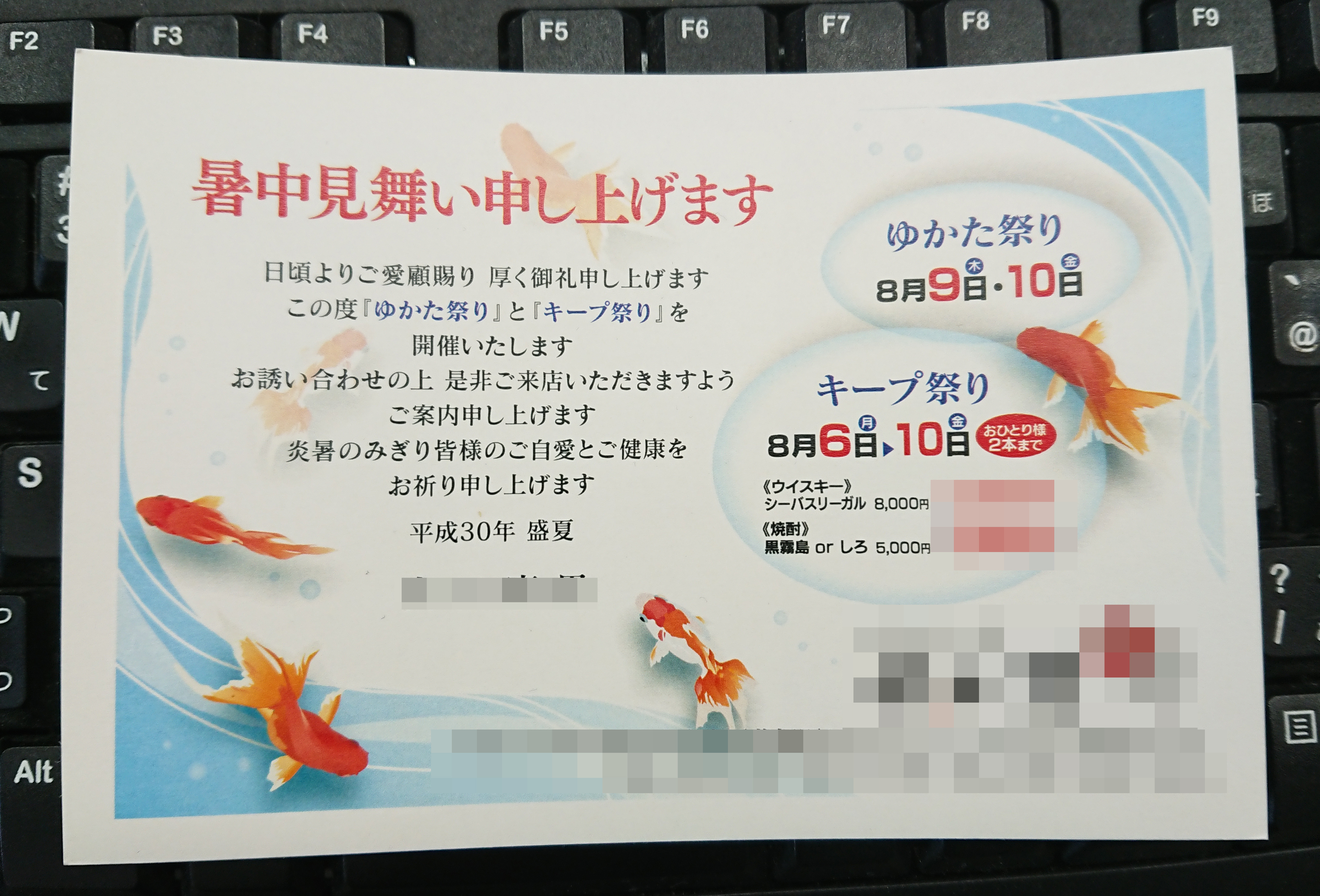 スナックからの暑中お見舞いのはがきは