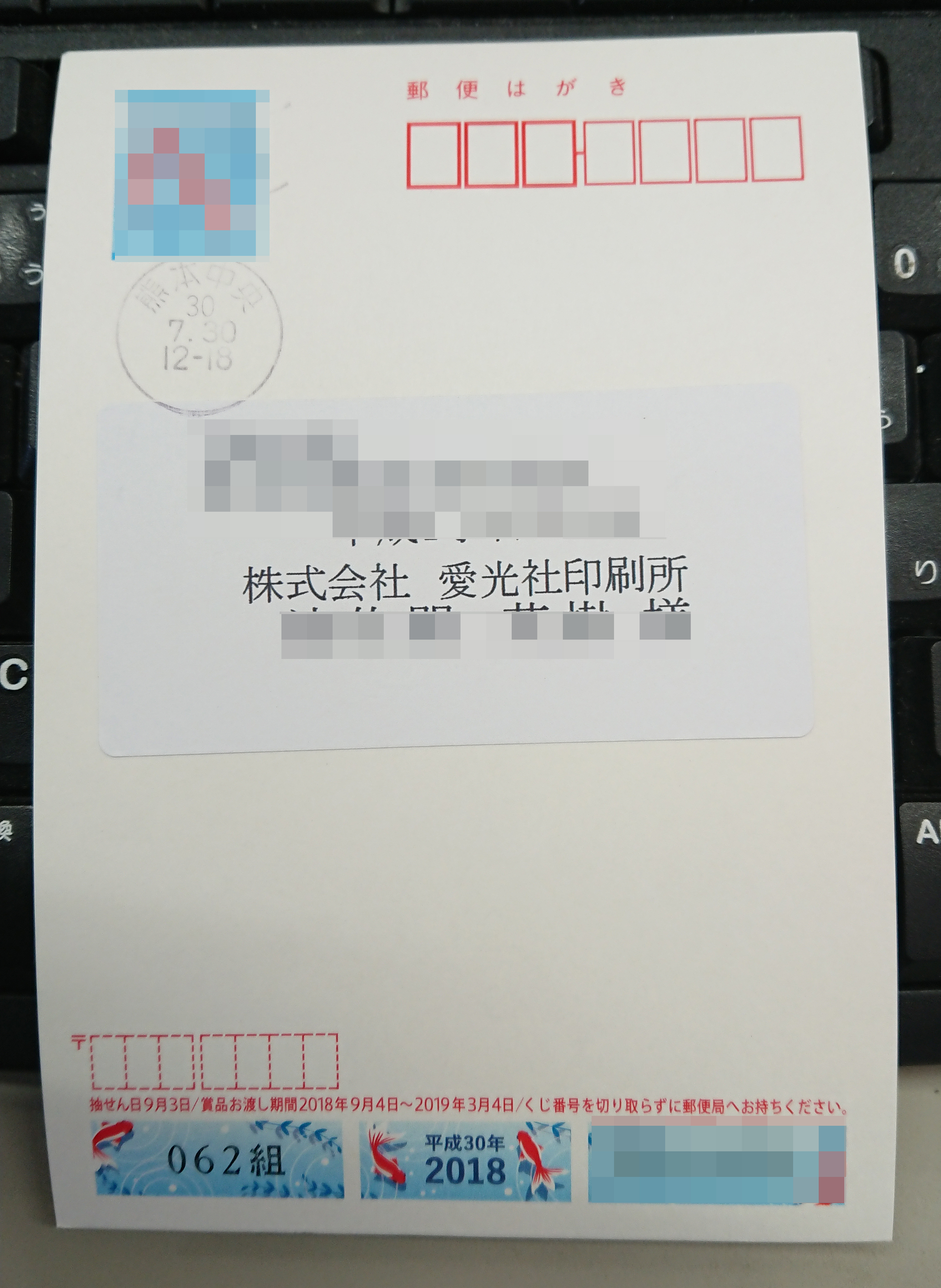 コチラのはがきは『カモメール』を使用いたしております。少しだけワクワク感はありますよね。抽選日までは