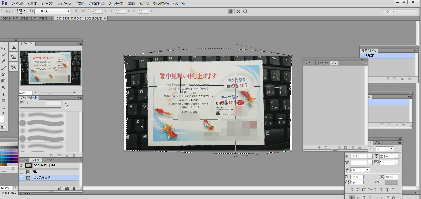 ちなみにカールして曲がったはがきの写真もフォトショップで加工しますと