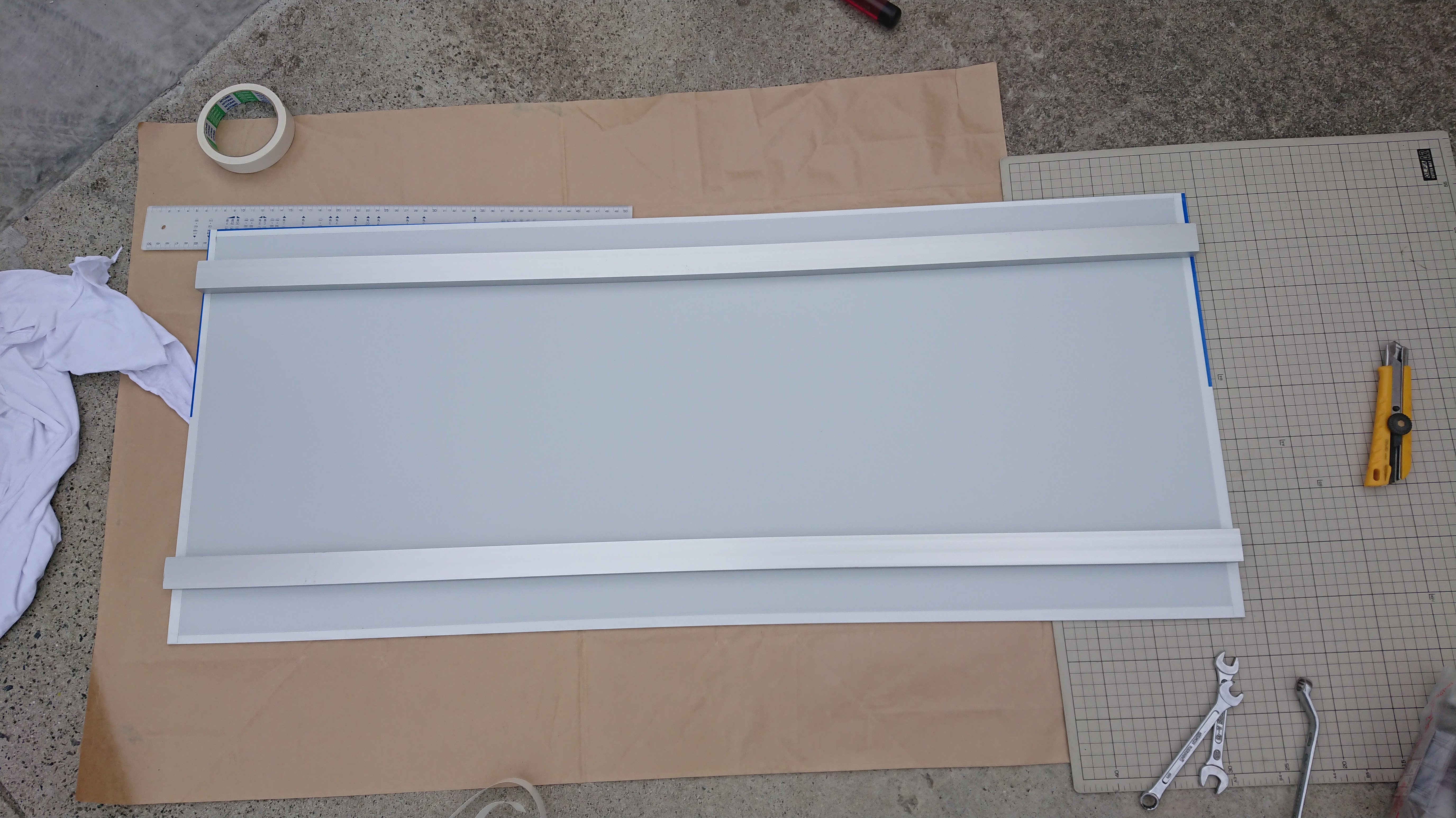 センターを出してマスキングで位置決めしまして。竹も外しまして…