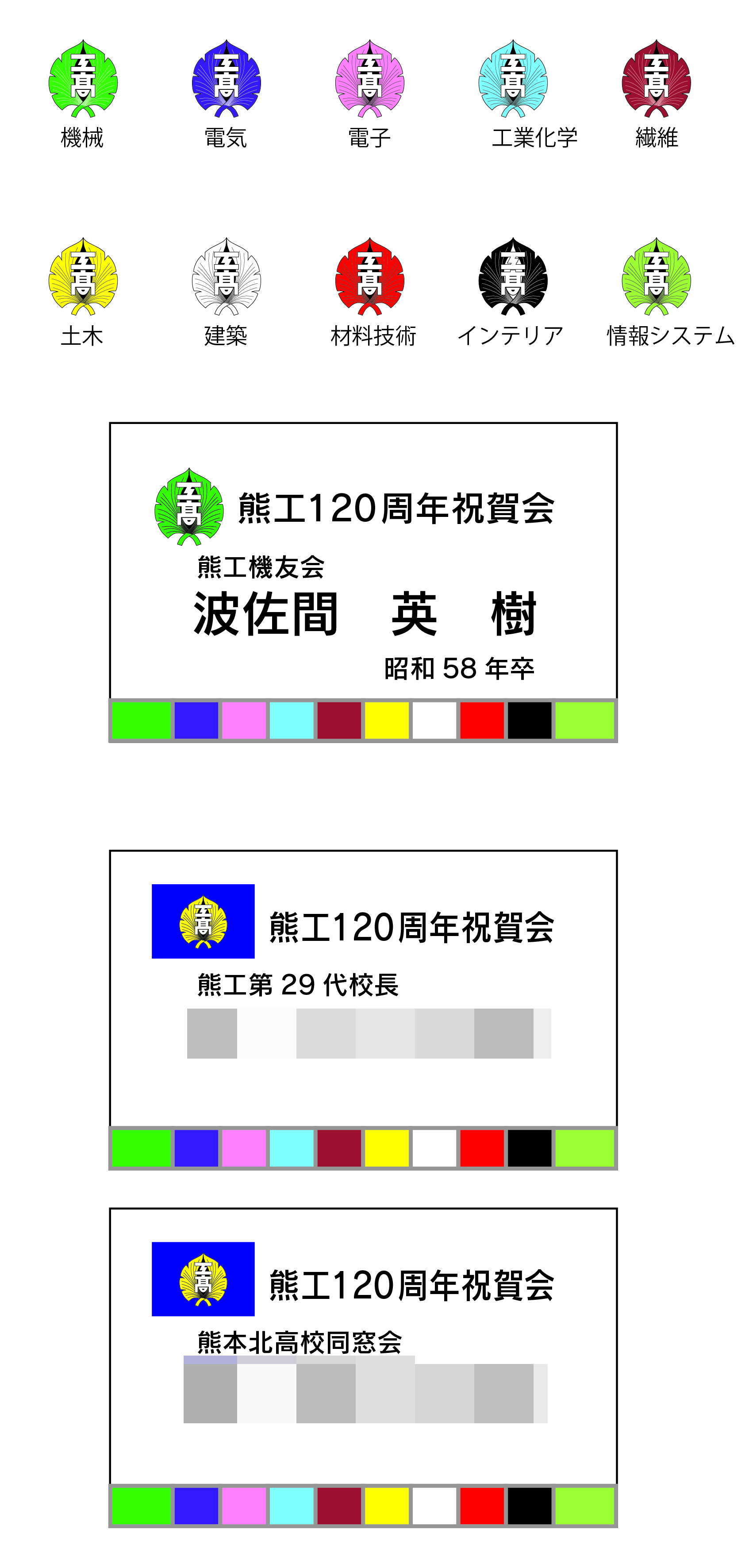 現在お作りしている名札は科別に校章の色を変える予定です。
