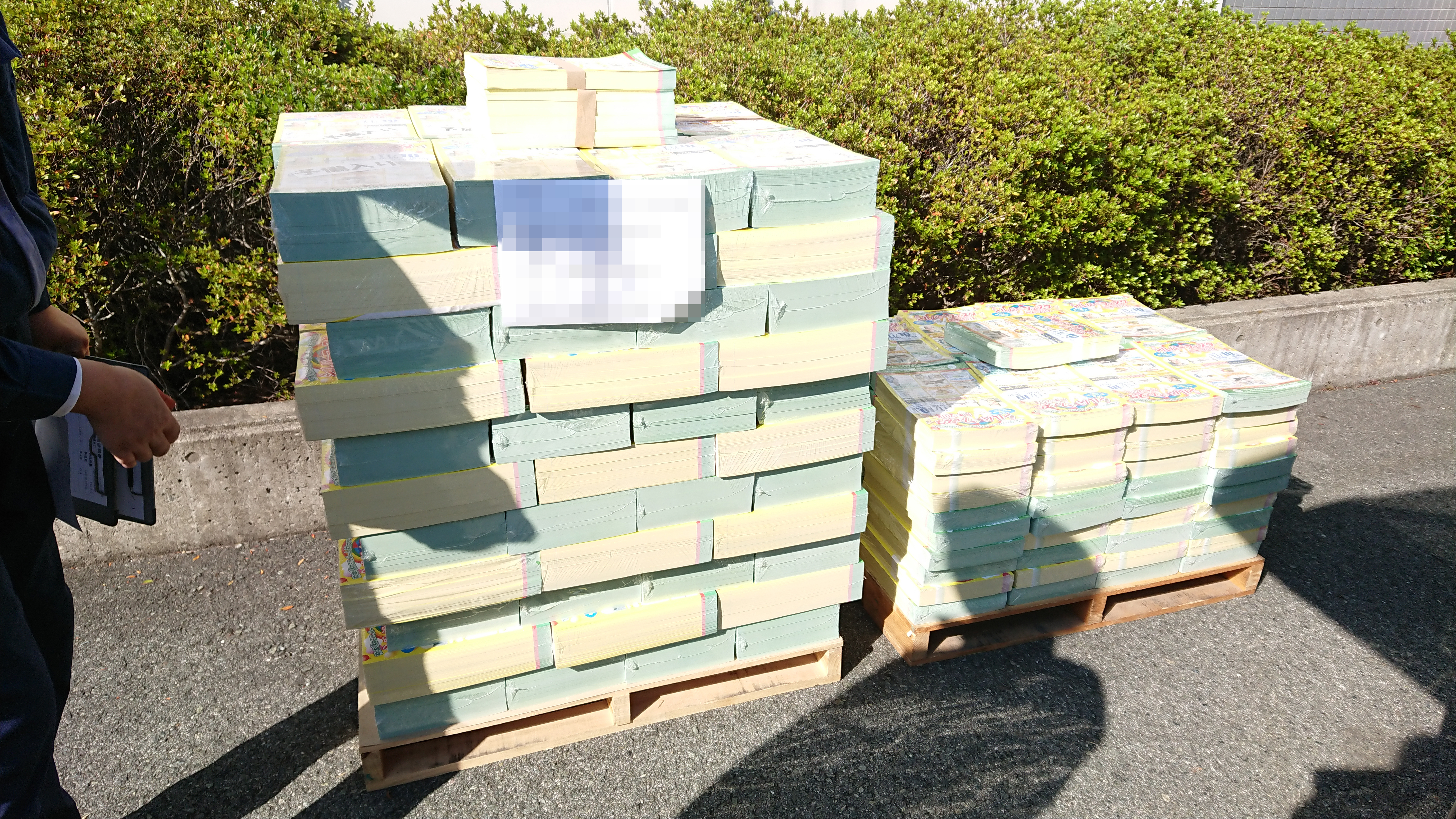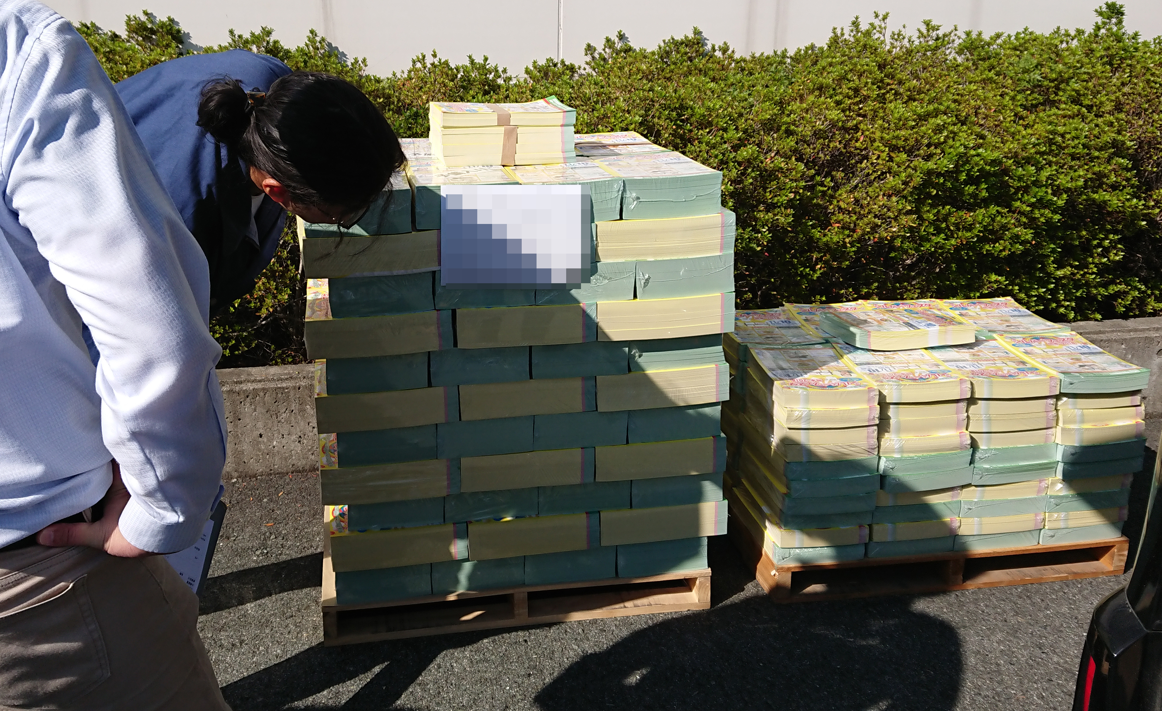 昨日はライトバンとミニバンの二台で140,000枚を納品に行きました。