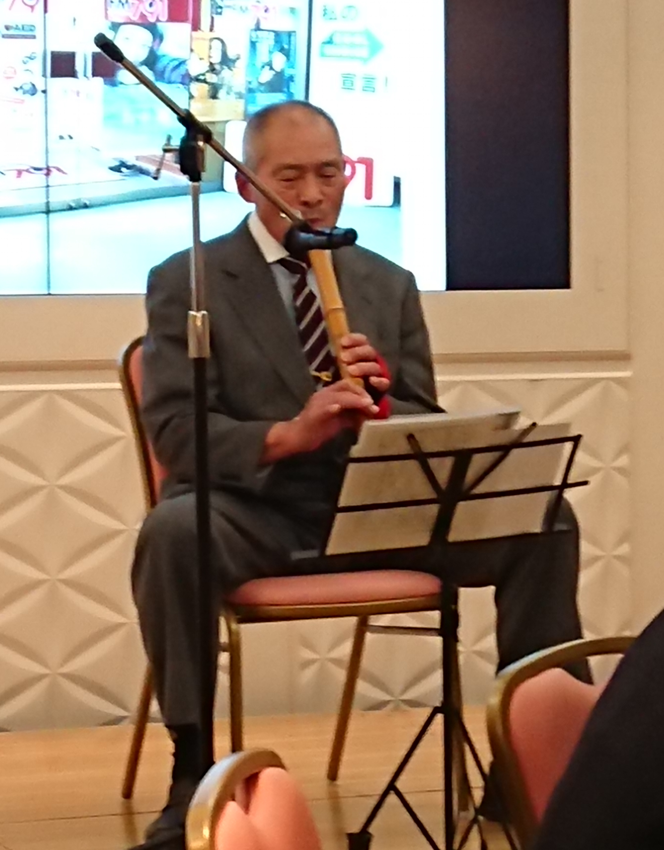 駐車場管理の方の尺八をはじめ