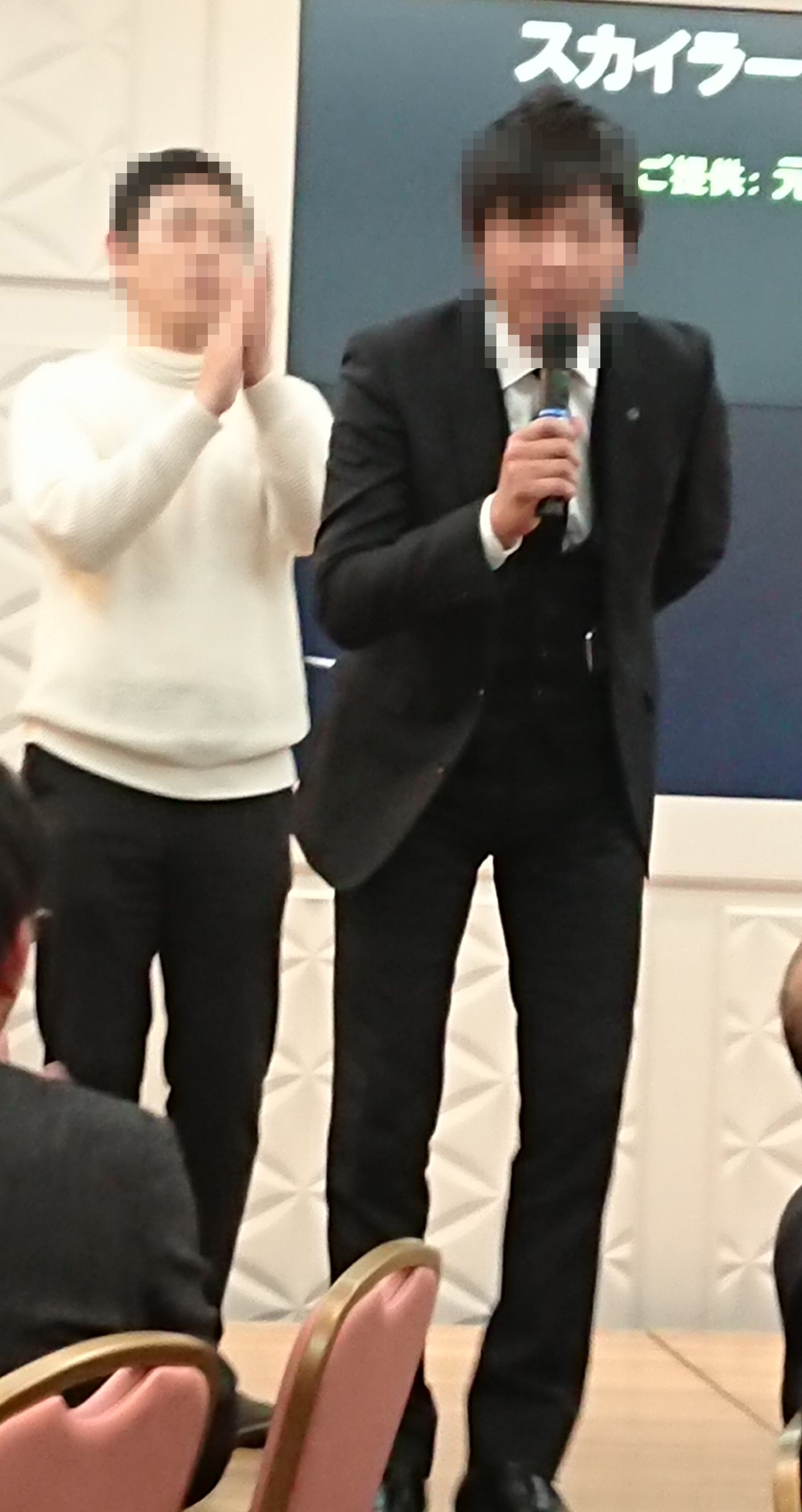 そしてなんと『ゲストで歌ってくれる愛光社の波佐間社長もどうぞ』との事で壇上に上がらせていただきました。
