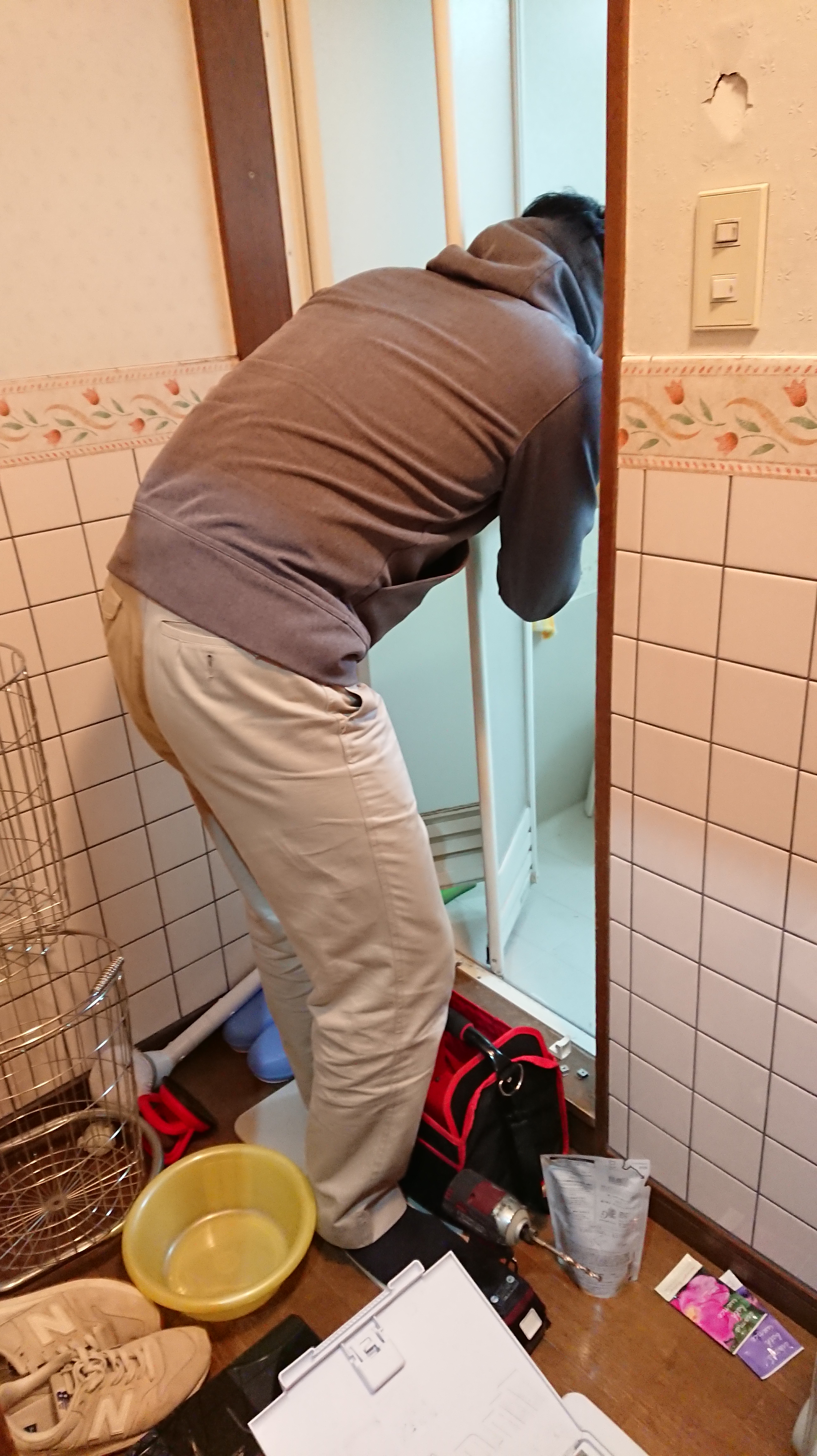 先日、お風呂場のドアが硬くて取っ手が壊れたと子どもが言ってきました。