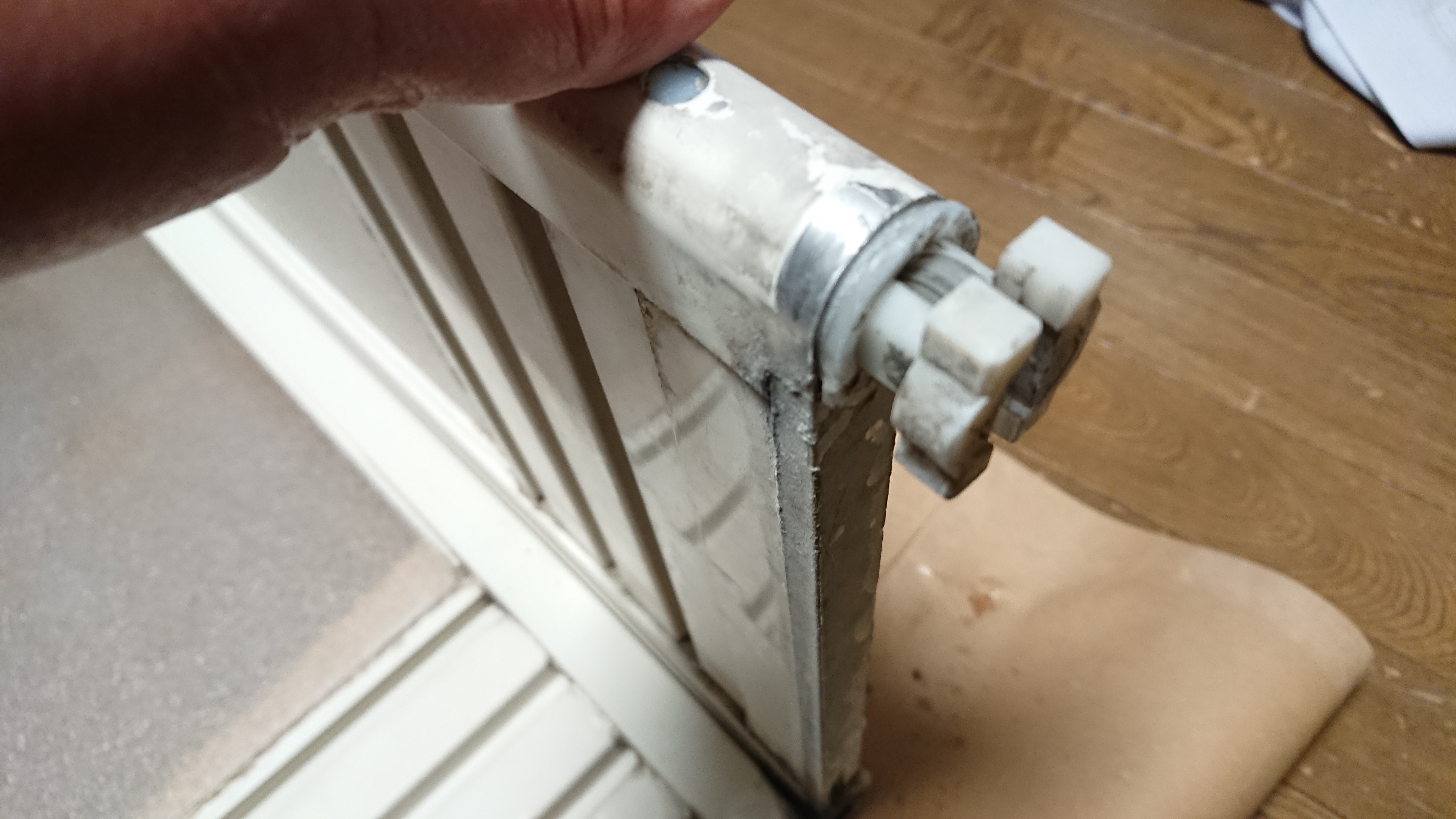 ネジの固定のベースが大きく裂けて外れていましたので、CRCを一時間振りかけて固着したネジをインパクトドライバーでネジを外しました。手では絶対外れないのが外れると嬉しいものです。